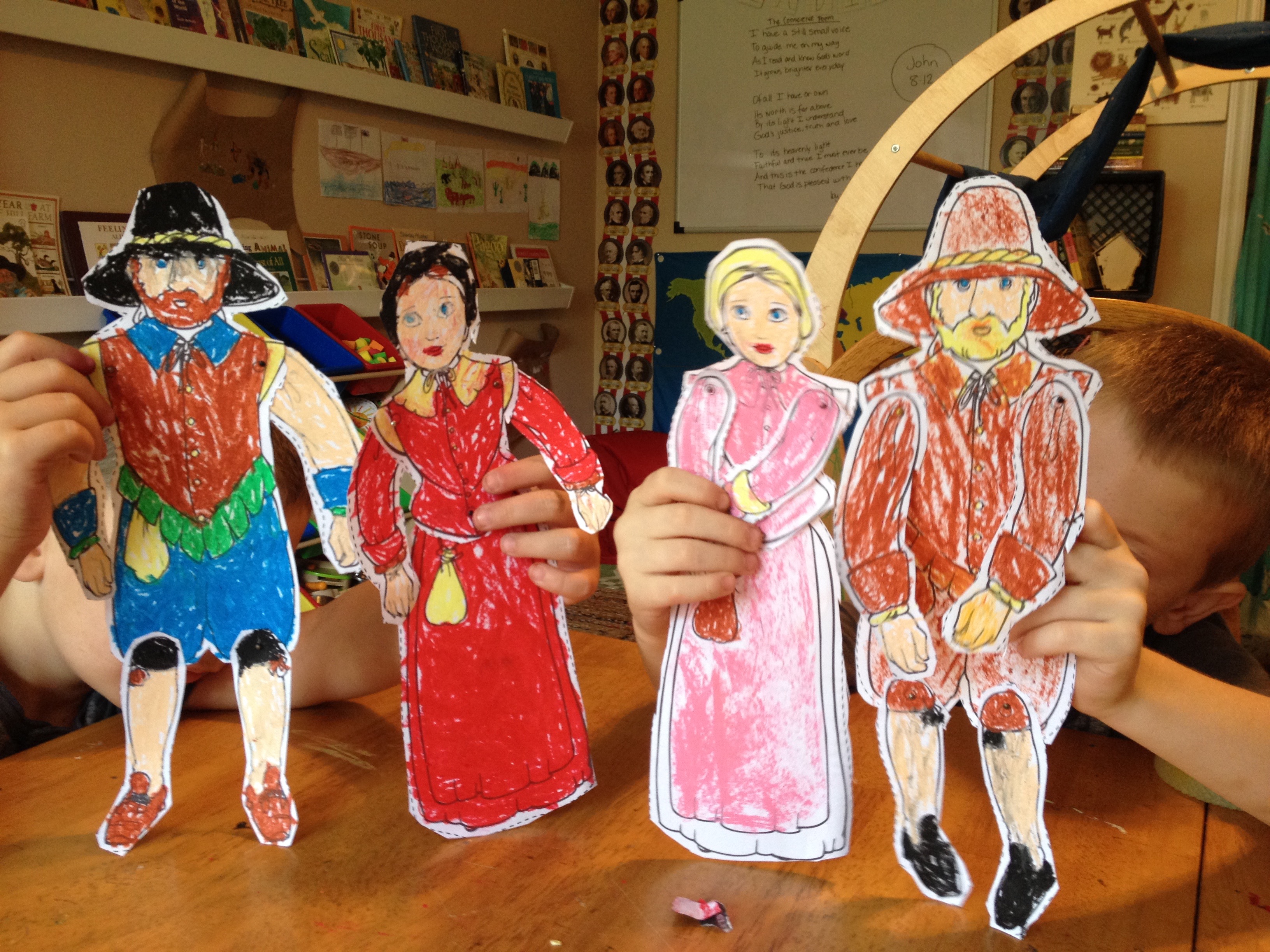 Lots of rain and thunderstorms this week meant no great outdoors for us. I chose my flexible version of the Pilgrims unit since we would not be making tiny Plymouth plantations out of sticks and mud in the great outdoors as previously requested.