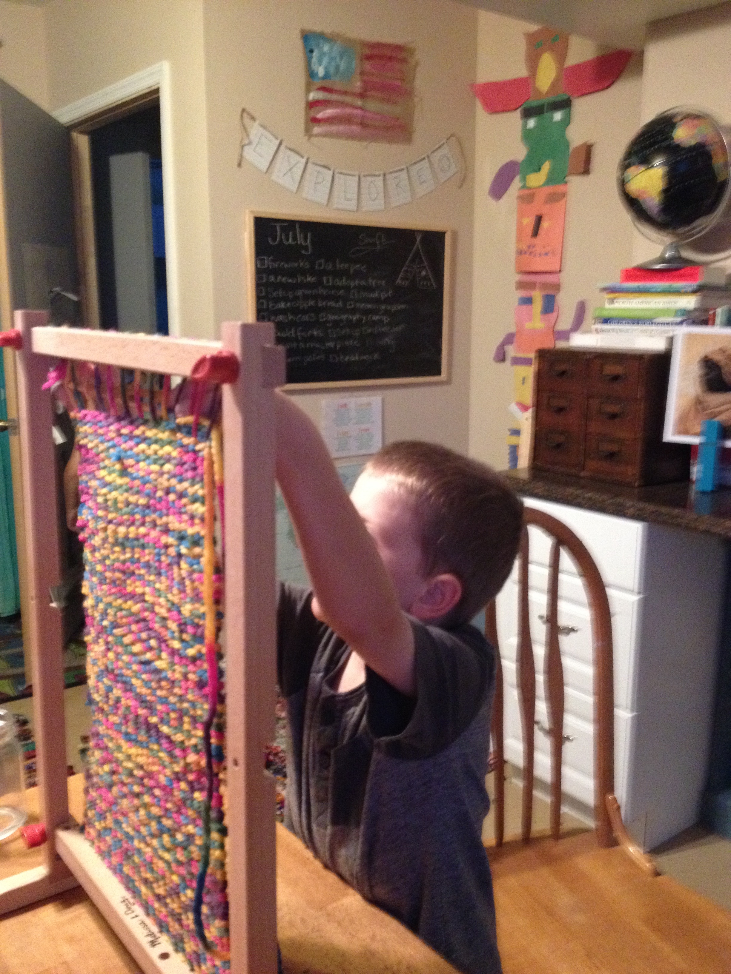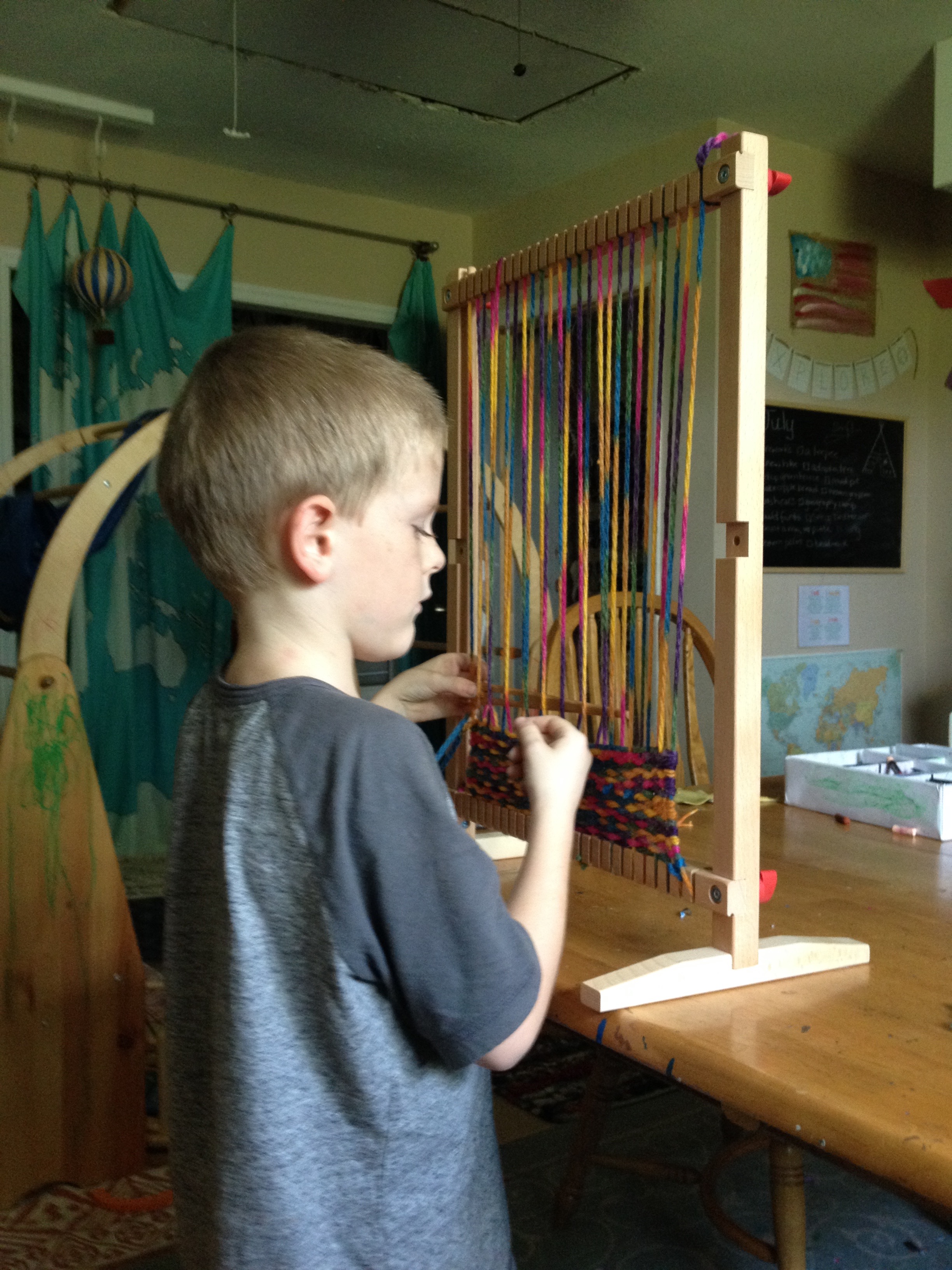 The loom is from Melissa and Doug. We were able to snag it for $10 with a coupon. All of my boys have loved giving the loom a try and we have two completed products so far. Weaving isn’t just for the little gals!