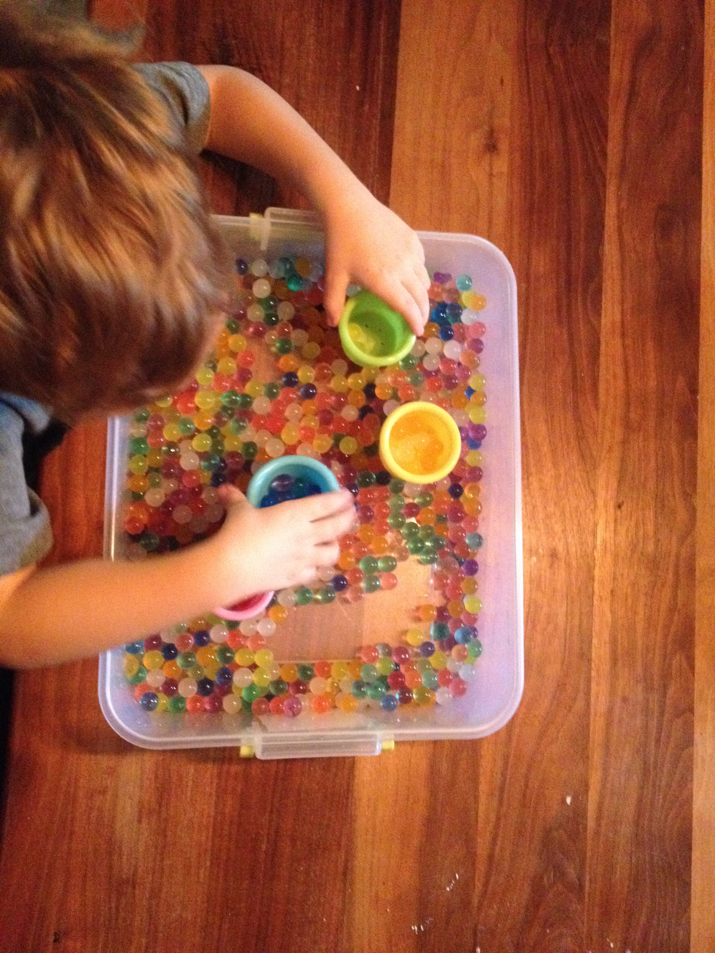 I really needed hands skillfully occupied this week. We kept last week’s Native American sensory bin and also added a sensory bin filled with water beads. The boys had a few tiny ships in there at one point and launched several journeys to the new world across a sea of colorful beads.
