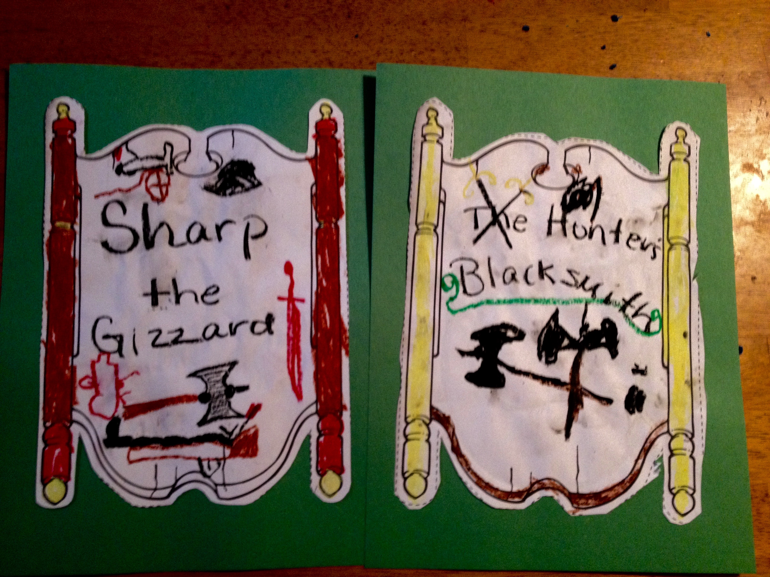 They expressed interest in opening their own individual blacksmith trades and we made signs for their respective shops; “Sharp the Gizzard” and “The Hunter’s Blacksmith.”