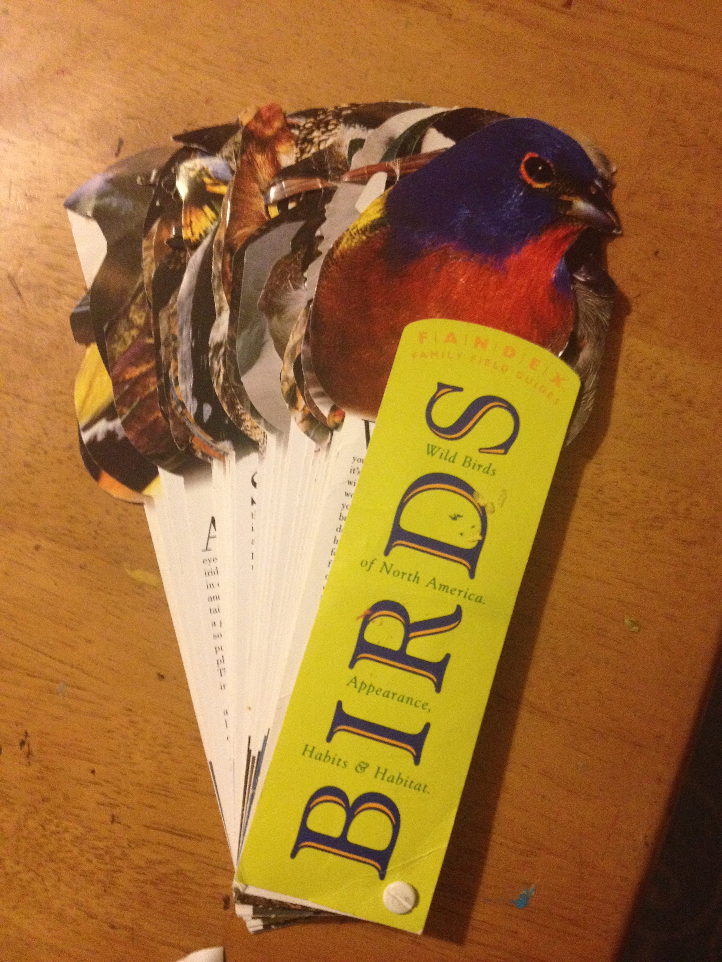 So we learned to look for signs of birds around us. Discovering their nests, learning about their feeding habits, watching for patterns in their departures and returns to the neighborhood. We set up bird feeders in our trees and left colorful yarn in the back hollow for the birds to use when building their nests.