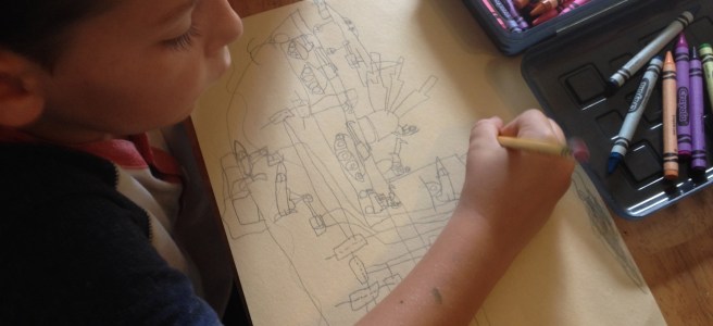This was intense work for the boys. They took notes and later spent two hours drawing highly weaponized steamships.