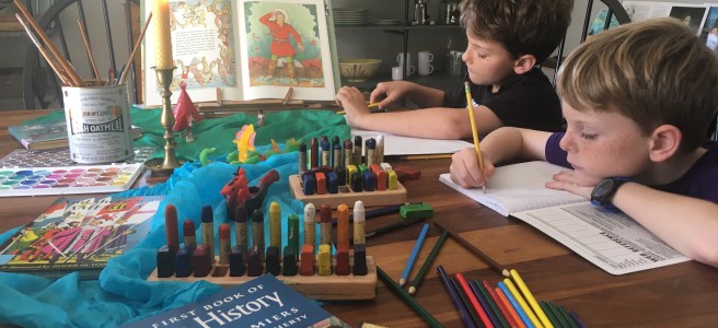 I read these books aloud while the boys made Viking longships out of modeling beeswax. This beeswax is a bit pricey BUT it lasts a great deal longer than playdoh, I had my last box for two years, and it smells amazing! I really love setting out a welcoming invitation for my kids to come and learn. I light a candle, put a few play silks on the table, I give them the beeswax, their composition notebooks and a bunch of art supplies. Then I step back and let them do as they wish with the materials. One boy made a mermaid (complete with seashell bra). This had absolutely nothing to do with Vikings, but he wanted to make a mermaid he could giggle over and he gave an absolutely lovely narration so I let it go. The mermaid was not a hill I wanted to die on. I’ve found that when I nitpick about too many things in their schoolwork, the boys shut down fast. They like to lead the way in learning, they love to make decisions, so I evaluate our time and find the crucial day-shaping decisions and I make those–the rest I leave to them. We are all happier for it.