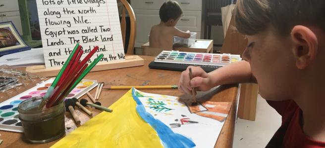 Our last two Friday exams were a blend of oral questions from the Streams of Civilizations tests and narrations from the boys about what stuck out most in their minds. They have vivid recall of every battle I mentioned in the past two weeks. They also carried forward quite a bit about Sargon and the flooding of the Nile each year in Egypt. If you don’t know about our Friday exams, you can read about them here.