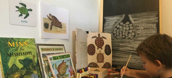 We continue to use Half a Hundred Acre Wood’s excellent blob maps throughout our year. The boys sometimes blob in other places too. I love how the blob map turned out on our plexiglass easel. He was able to position the easel so that the wall map was in his line of sight and then he transferred the continents by their correct position onto the easel. Spontaneous, fun, hands on exercises like this are always my favorite and turn out way better than anything I lay out in my plans because it is child-led and therefore they are determined to do it!
