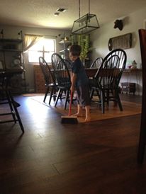 But slowing down and teaching a child to take on the task for himself today, yields over time, a greater independence and self sufficiency later in life. We clean for the future, people!