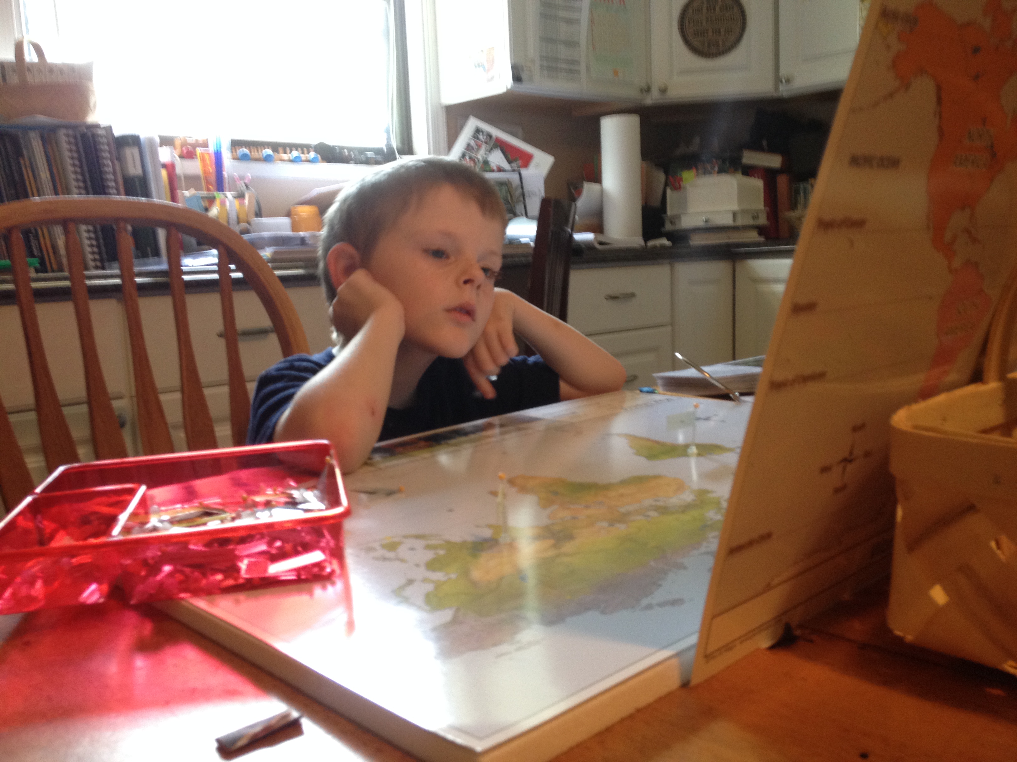Based on other reports of low pretest scores, I went into the day anticipating low scores on our country identification pretest. My children definitely did not get every country, but they performed much higher than I had anticipated in part because of their time in Classical Conversations and also their frequent use of Pin it! Maps. There is still much to be learned, however, and they are eager to take on the task. I was careful to keep my face completely neutral, even when they missed countries I KNEW they knew.