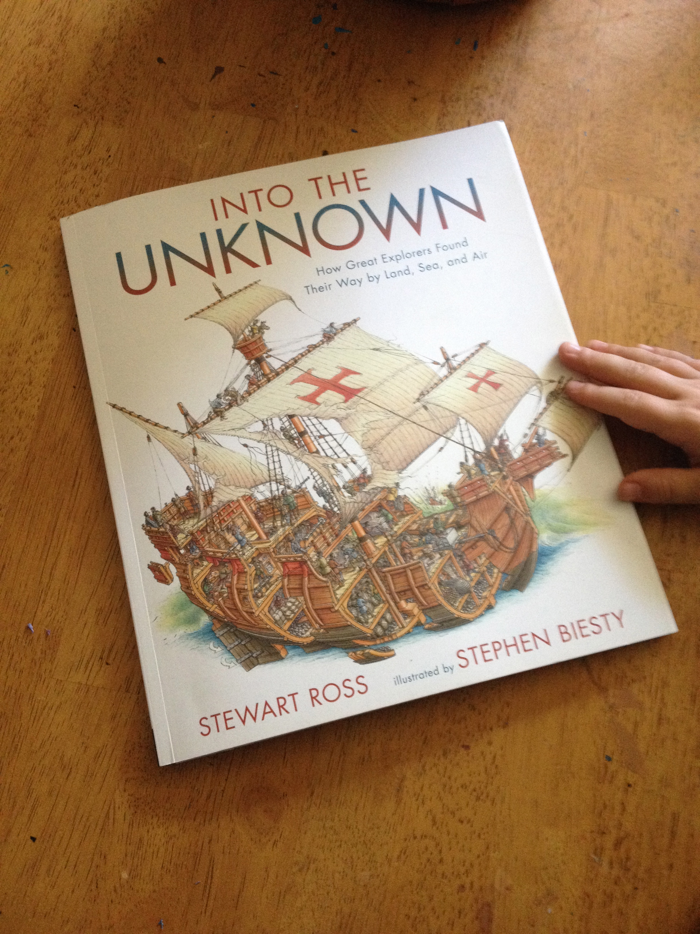 I found “Into the Unknown” and the kids adore it. Details, galore! Beginning with Pytheas the Greek sailing to Ultima Thule circa 340 BC and ending with Apollo 11 in 1969, this wonderful book gives us historical play by play, along with diagrams of navigation tools, charts and beautiful drawings of the vessel’s insides. Sophisticated Busy Town.
