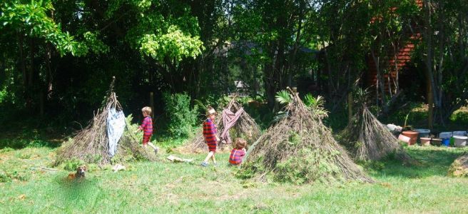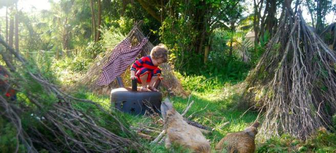 When I asked him about it he responded, “I am a pioneer boy in my heart today. I want to only be in this tree with my thoughts and imagine whatever I want. I think its the best way to play.” Little by little, his brothers joined him. When we arrived home, they quickly changed clothes and headed outdoors again; eager to collect eggs and mushrooms, scouting for places to build a log cabin, gathering pinecones and jasmine flowers to trade with neighboring Indian villages.