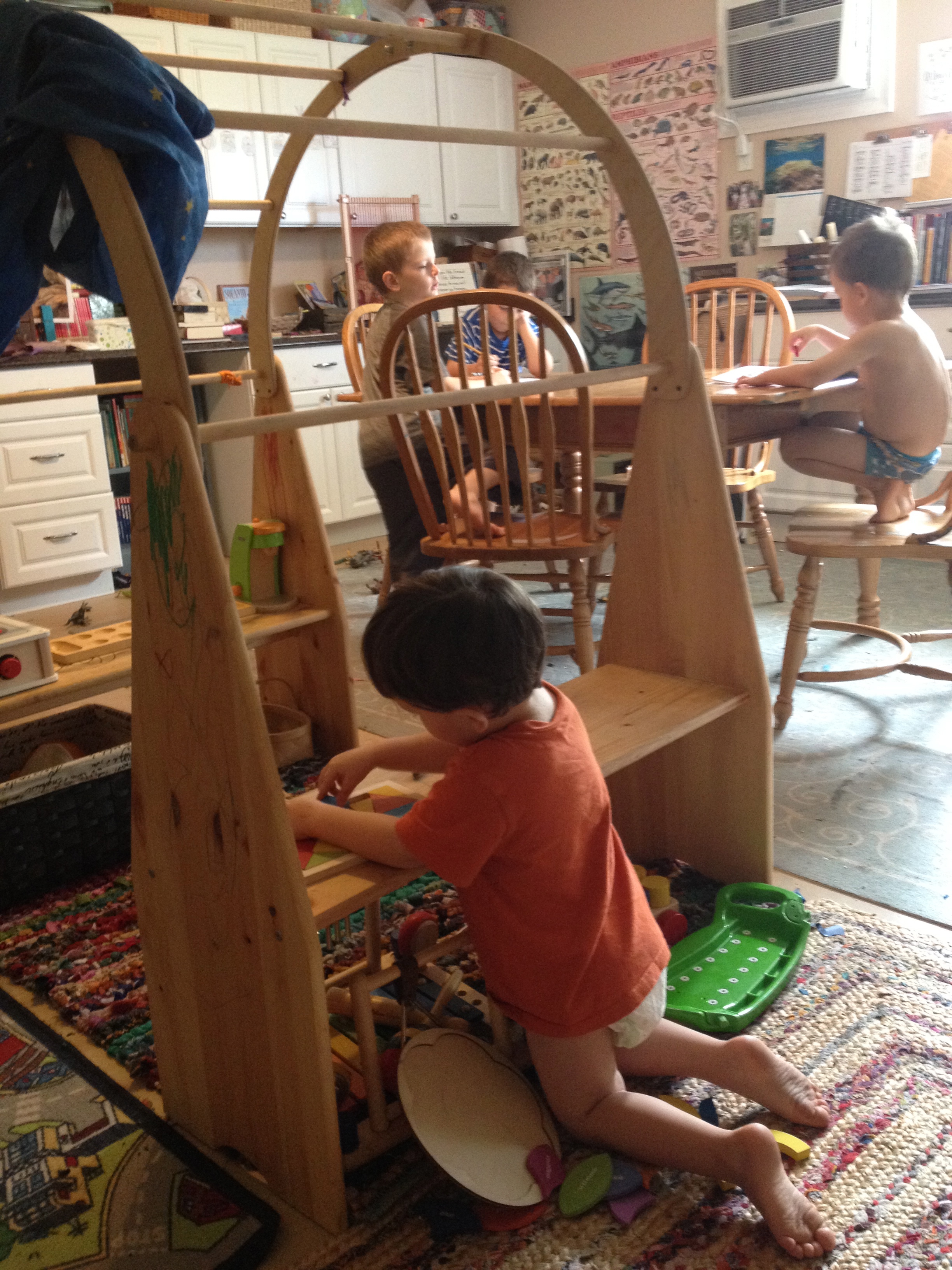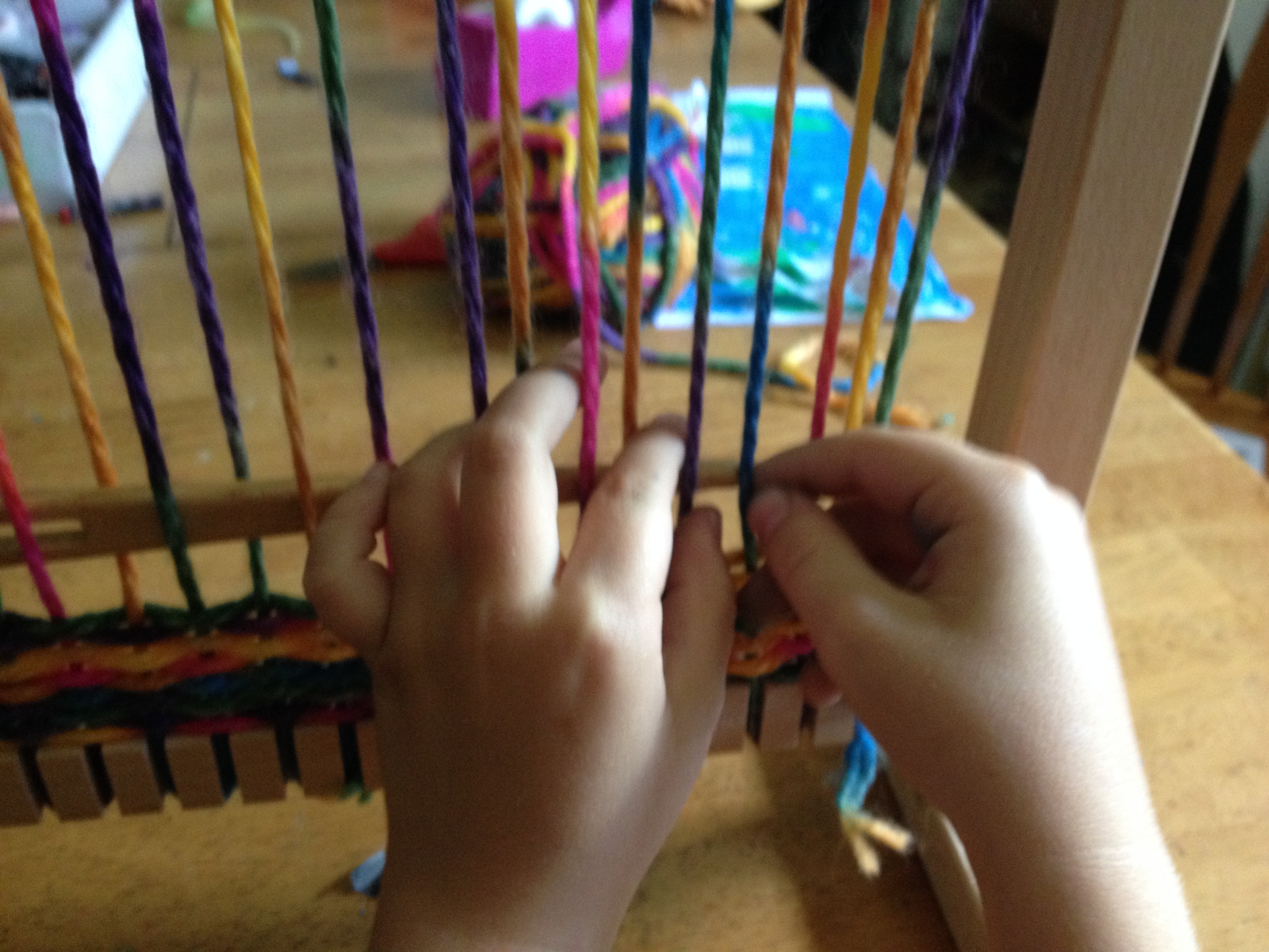 We took the loom out to the backyard and did some weaving while we “watched the sheep.” We had to bring our rifles along in case the wolf (our west highland terrier) showed up. We pretended to take long sea voyages while huddled in bunk beds.