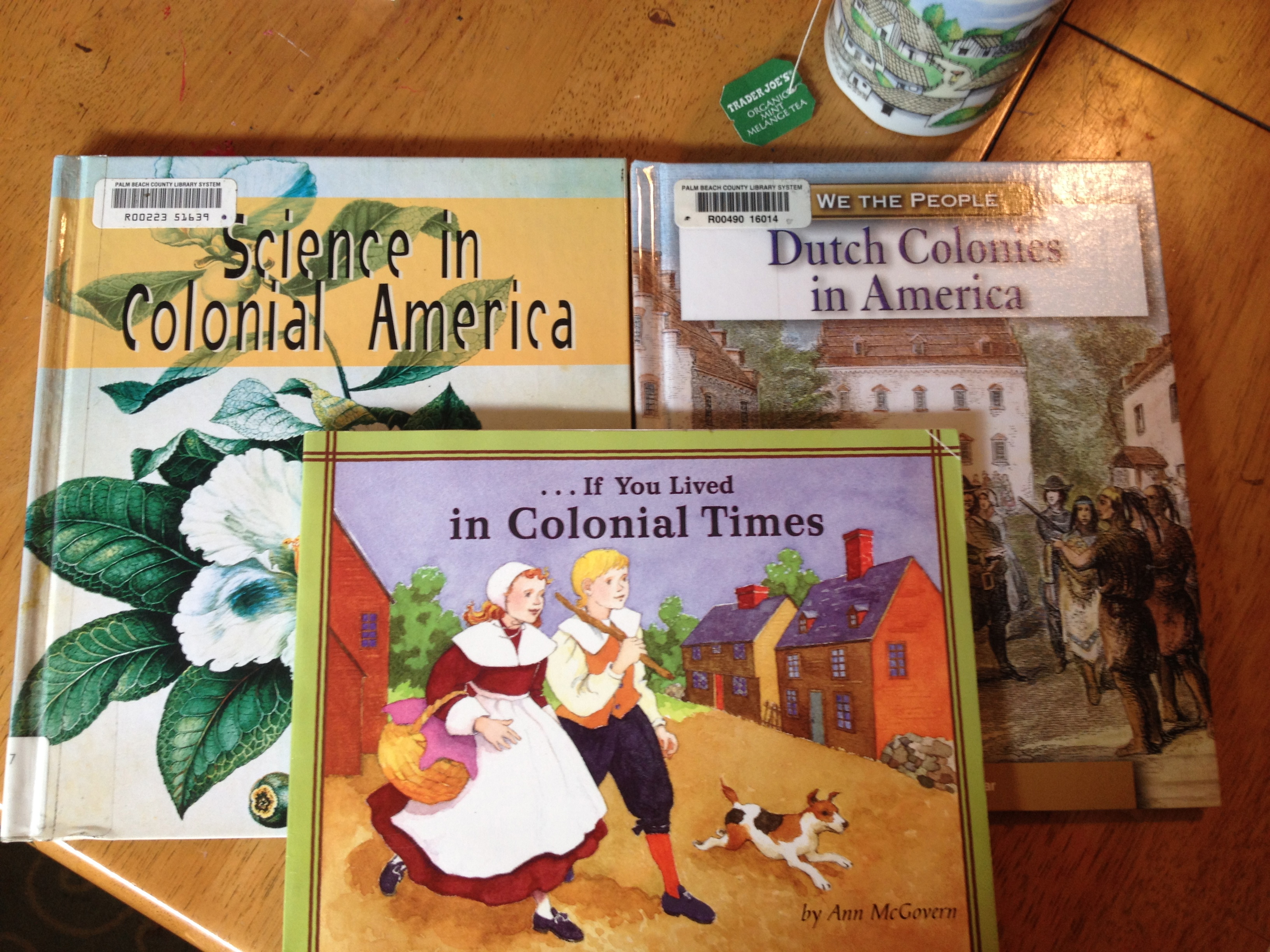 We are also plodding our way through Betsy Maestro’s book: The New Americans: Colonial Times 1620-1689. We began last week during Pilgrims and we read a bit more this week about the colonists in New Amsterdam. The book does describe plenty of the violence between the settlers and the Native Americans. I am still not sure how much of the book we will finish in weeks to come. As always, I must balance informing their minds while still taking their young age into consideration and protecting their hearts. The fragility of their innocence is both humbling and terrifying sometimes.