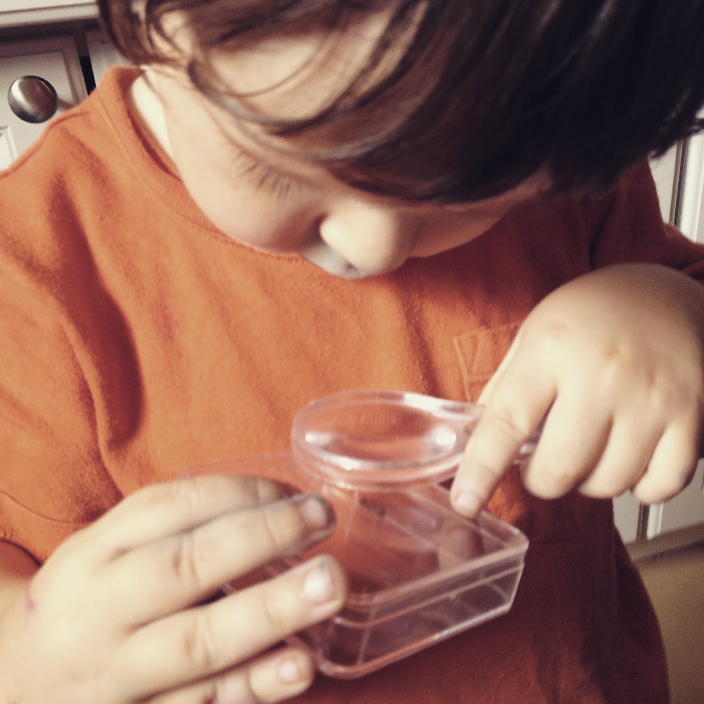 The boys always keep their hands busy while I read. The preschool gang made use of our sensory bins during story time. Mostly water beads, kinetic sand, corn and playdoh. They have learned to play quietly and are quite absorbed in what they are doing when measuring cups, magnifying glasses, scissors and toob figures are involved. Its taken training over the course of many weeks, but the stretches of quiet play are getting longer and longer each day!